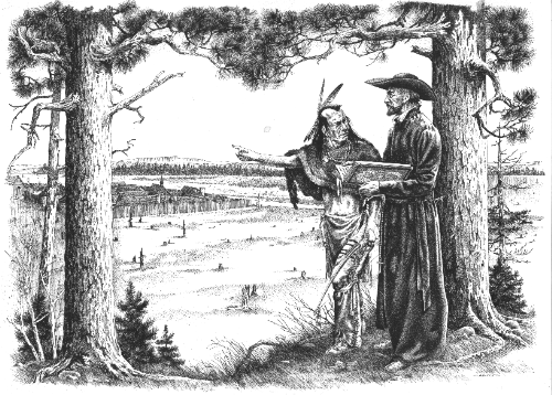 his hard soled European boots on the moccasin worn footpaths of Huronia.